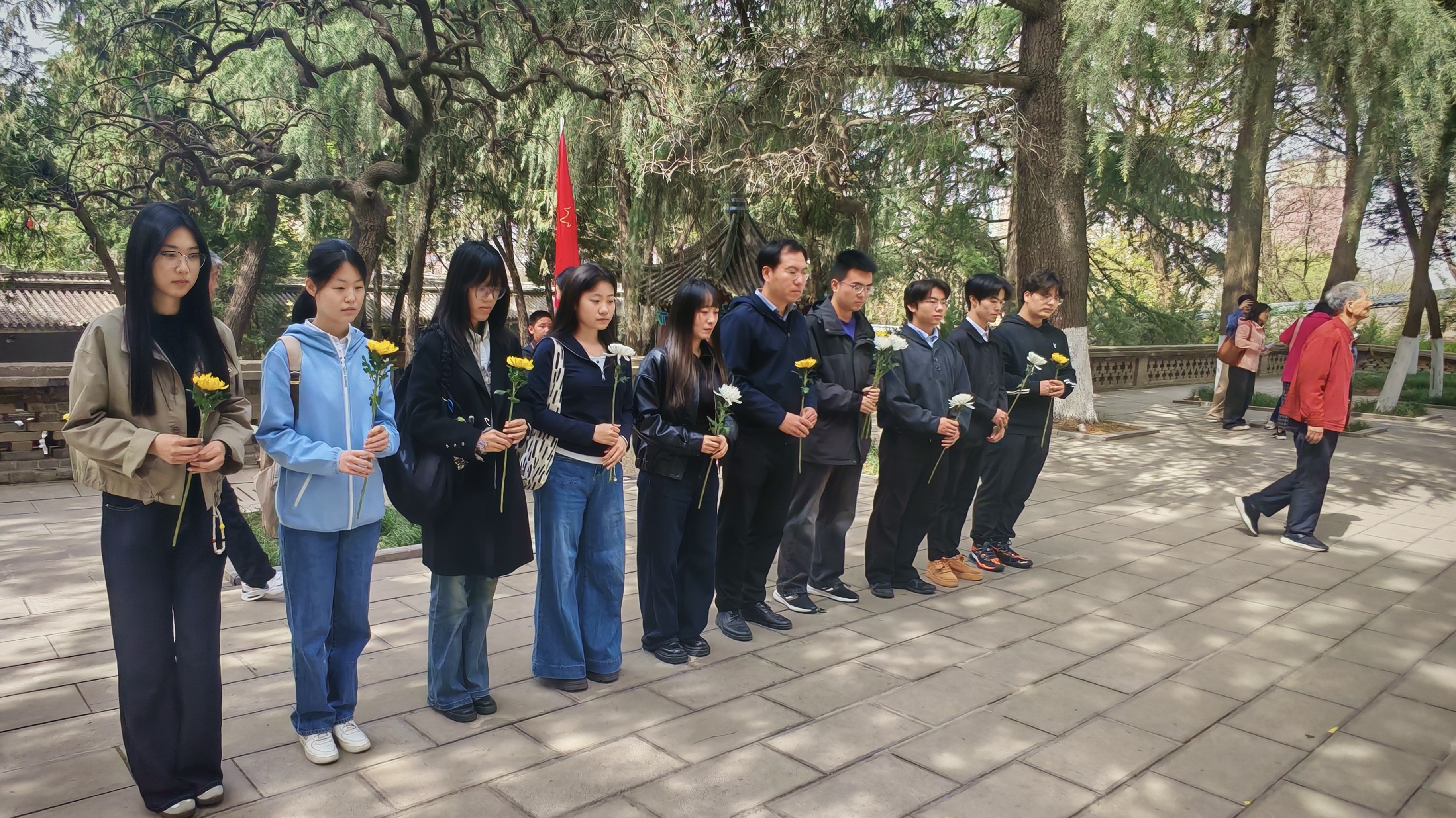 活动伊始,全体师生怀着无比崇敬的心情整齐列队,祭扫仪式正式启动。学院教师代表、学生代表共同向杨虎城将军等革命先烈献花,全体人员肃立默哀三分钟,深切缅怀英烈们为国家独立、民族解放作出的伟大牺牲与不朽贡献,用朴素而庄重的方式,表达对英烈的无限敬仰与深切追思。